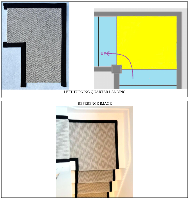We also offer Winder Step panels and Quarter Landing panels that perfectly match straight stair runner panels, allowing for a seamless finish on turning winder steps. Our winder step panel set includes the middle and upper steps, with each panel consisting of a riser and a tread. For the lower step, you can simply use a standard straight panel.