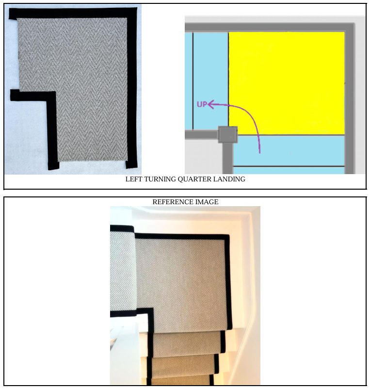 We also offer Winder Step panels and Quarter Landing panels that perfectly match straight stair runner panels, allowing for a seamless finish on turning winder steps. Our winder step panel set includes the middle and upper steps, with each panel consisting of a riser and a tread. For the lower step, you can simply use a standard straight panel.