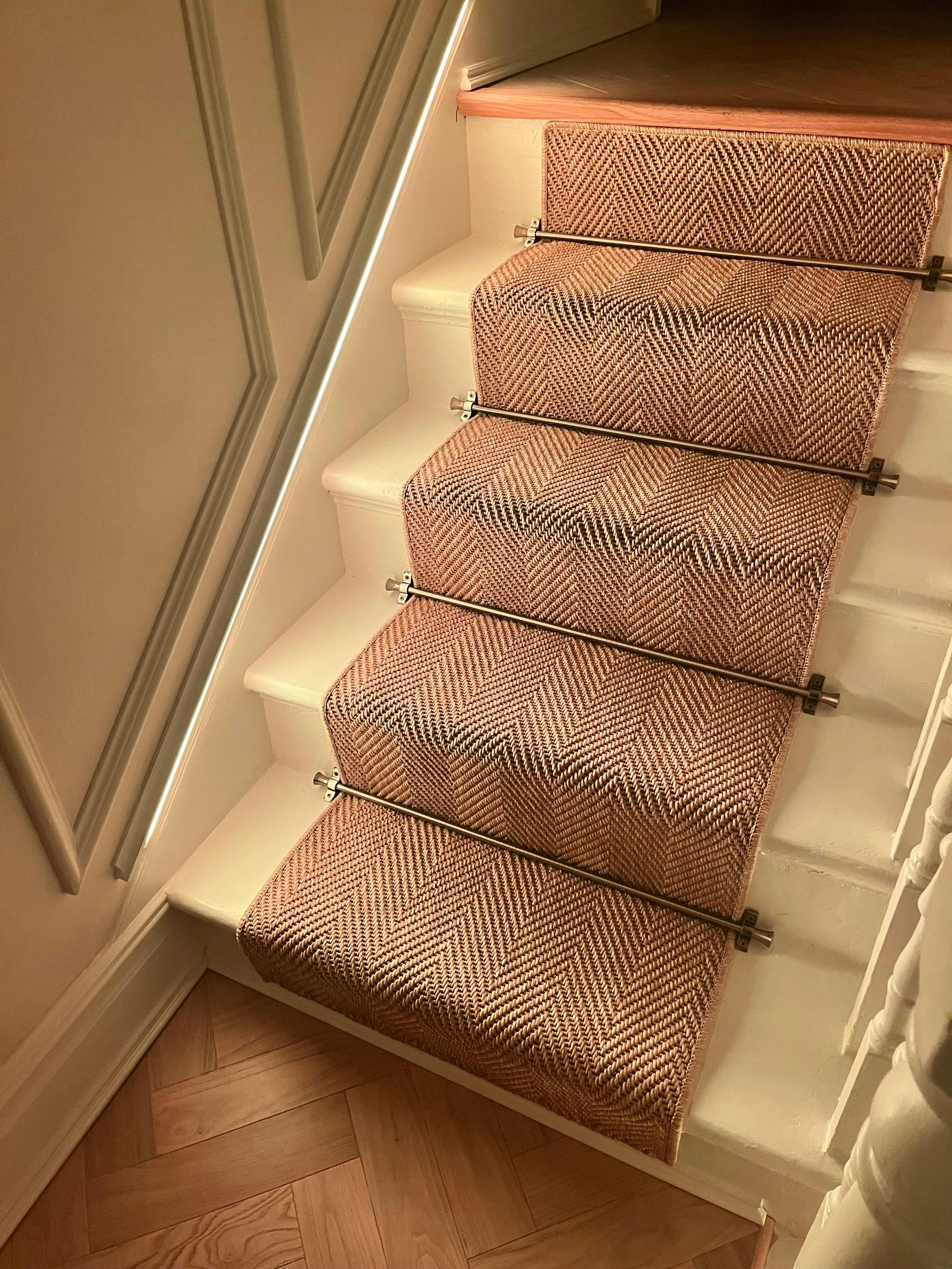 Herringbone New England Beige Stair Runner with Self-Colour Edge